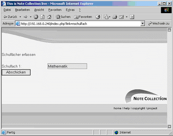Bezeichnung des Schulfachs eingeben. Z.b. Mathematik